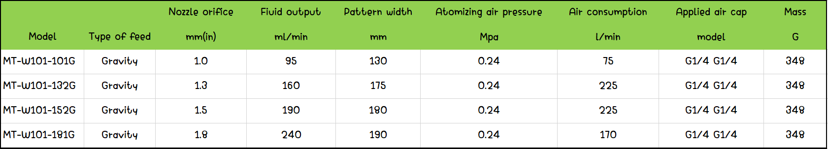 • Easier to use and more suitable for the environment with multiple nozzle sizes and paint-feeding types