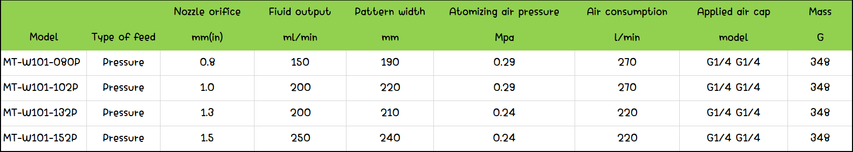• Easier to use and more suitable for the environment with multiple nozzle sizes and paint-feeding types